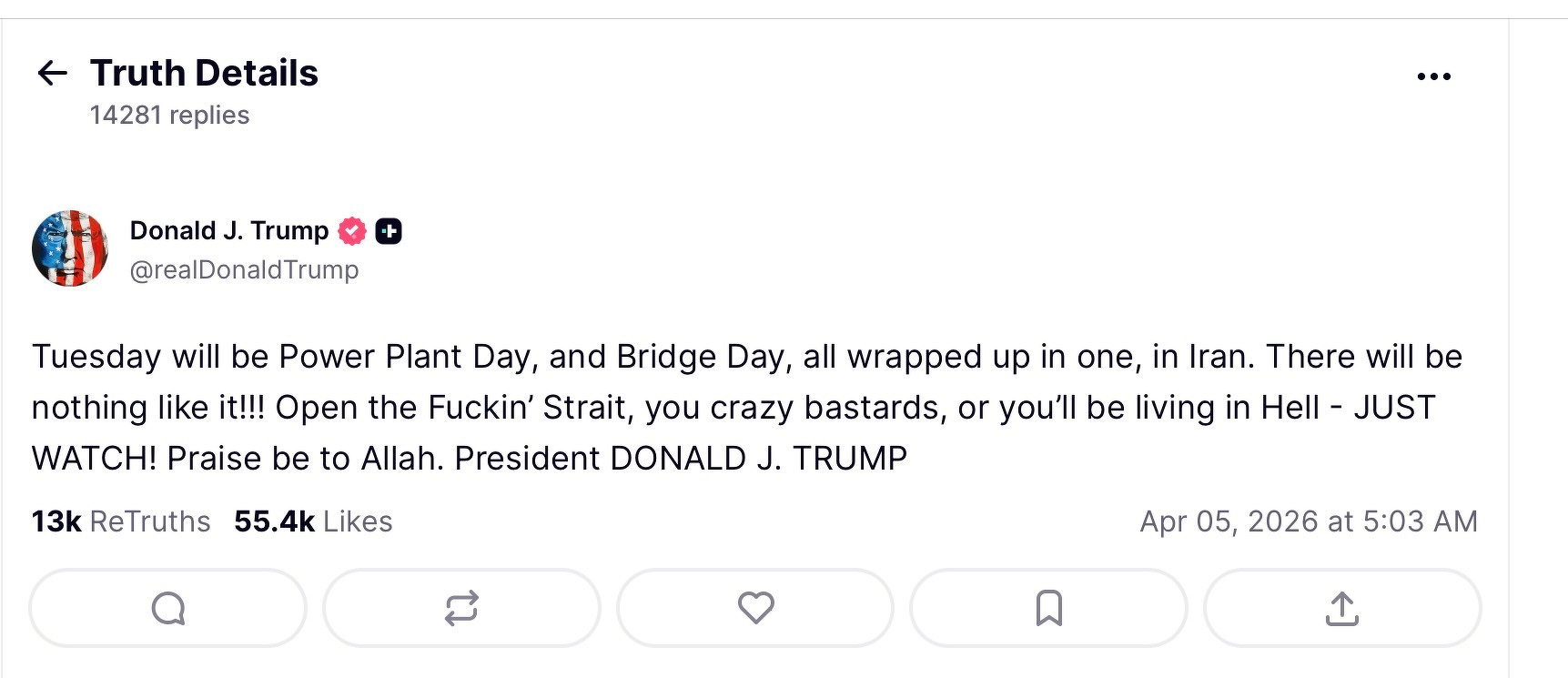 He threatened atrocities against Iran and signaled surrender on the same day.